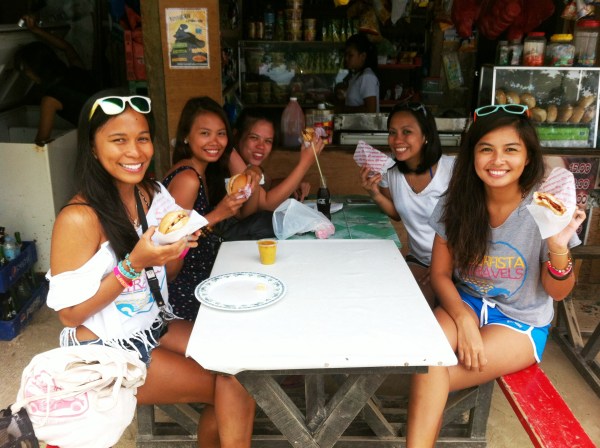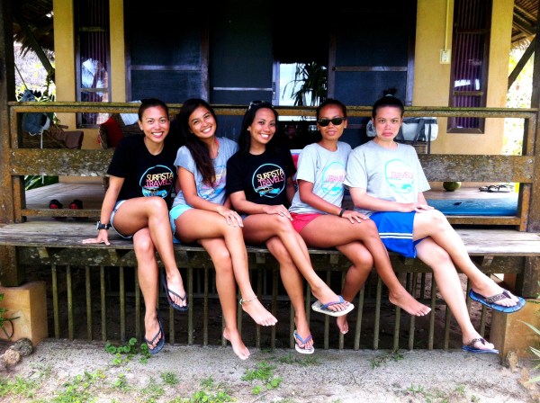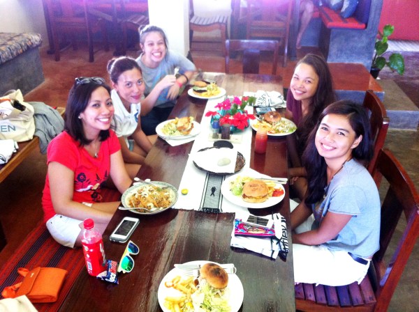 Our first day and first meal at the Sagana Resort in Siargao: Nette, Frances, Jannelle, Camille and Jovanne